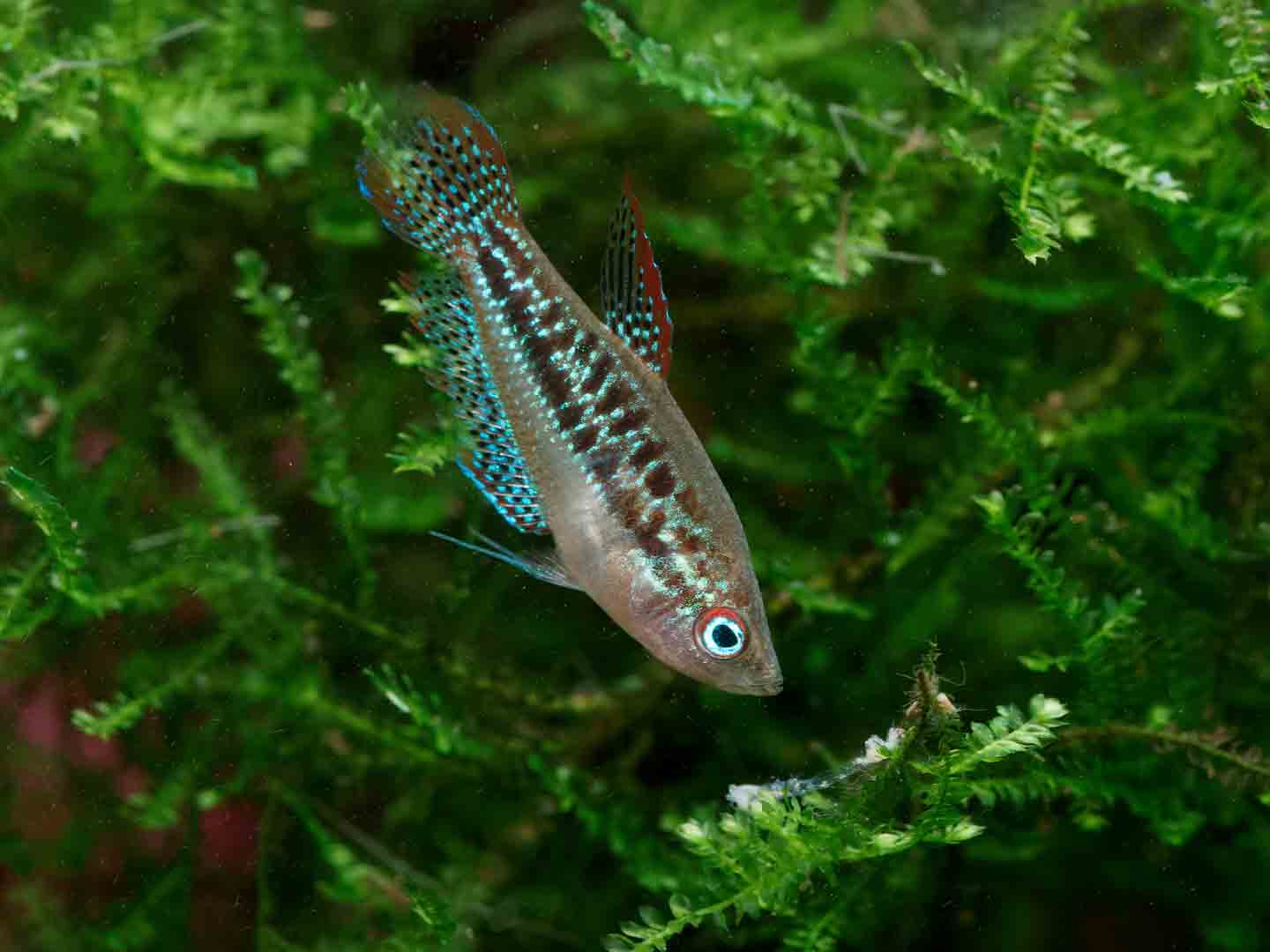 Because males tend to be territorial, however, it’s best to keep them singly with peaceful community fish. A varied diet that includes foods like bloodworms will help enhance this species’ coloration.