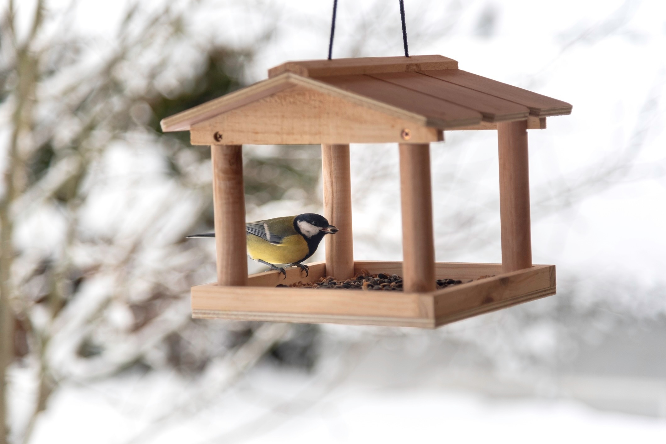 “Bird feeders definitely help birds in the winter when food is scarcer,” Martinez says. But since birds tend to grab a quick snack without lingering at hoppers, you’ll likely get a shorter viewing experience.