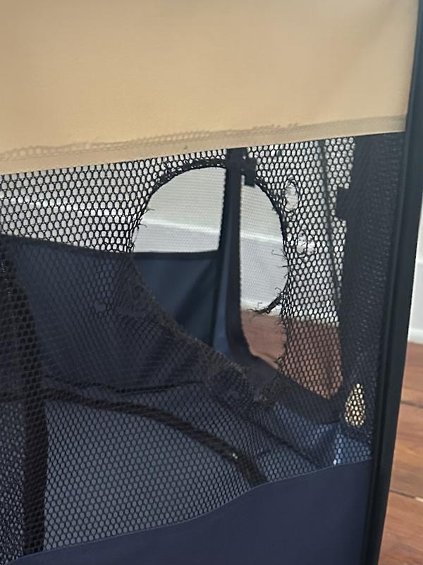 This playpen features a removable zip-off and washable floor mat—perfect for keeping things neat and tidy.