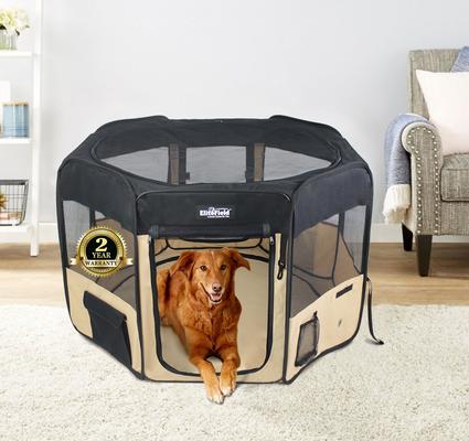 EliteField 2-Door Soft-Sided Dog & Cat Playpen, Black & Beige, 48-in