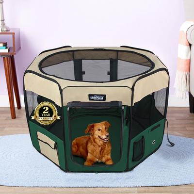 EliteField 2-Door Soft-Sided Dog & Cat Playpen, Beige & Green, 62-in
