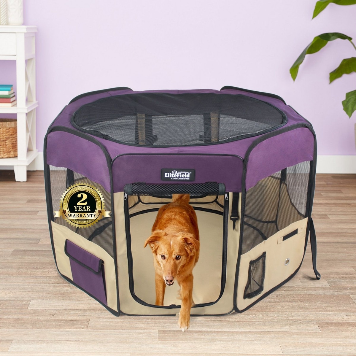 EliteField 2-Door Soft-Sided Dog & Cat Playpen, Purple & Beige, 62 x 62 x 24-in