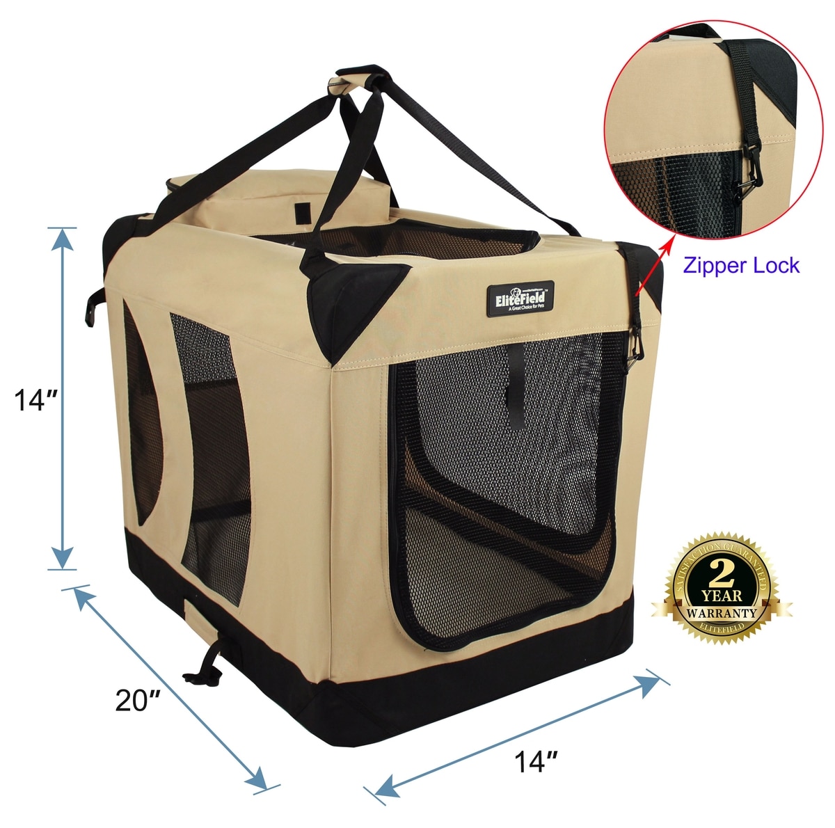 EliteField 3-Door Collapsible Soft-Sided Dog Crate, Beige, 20 inch