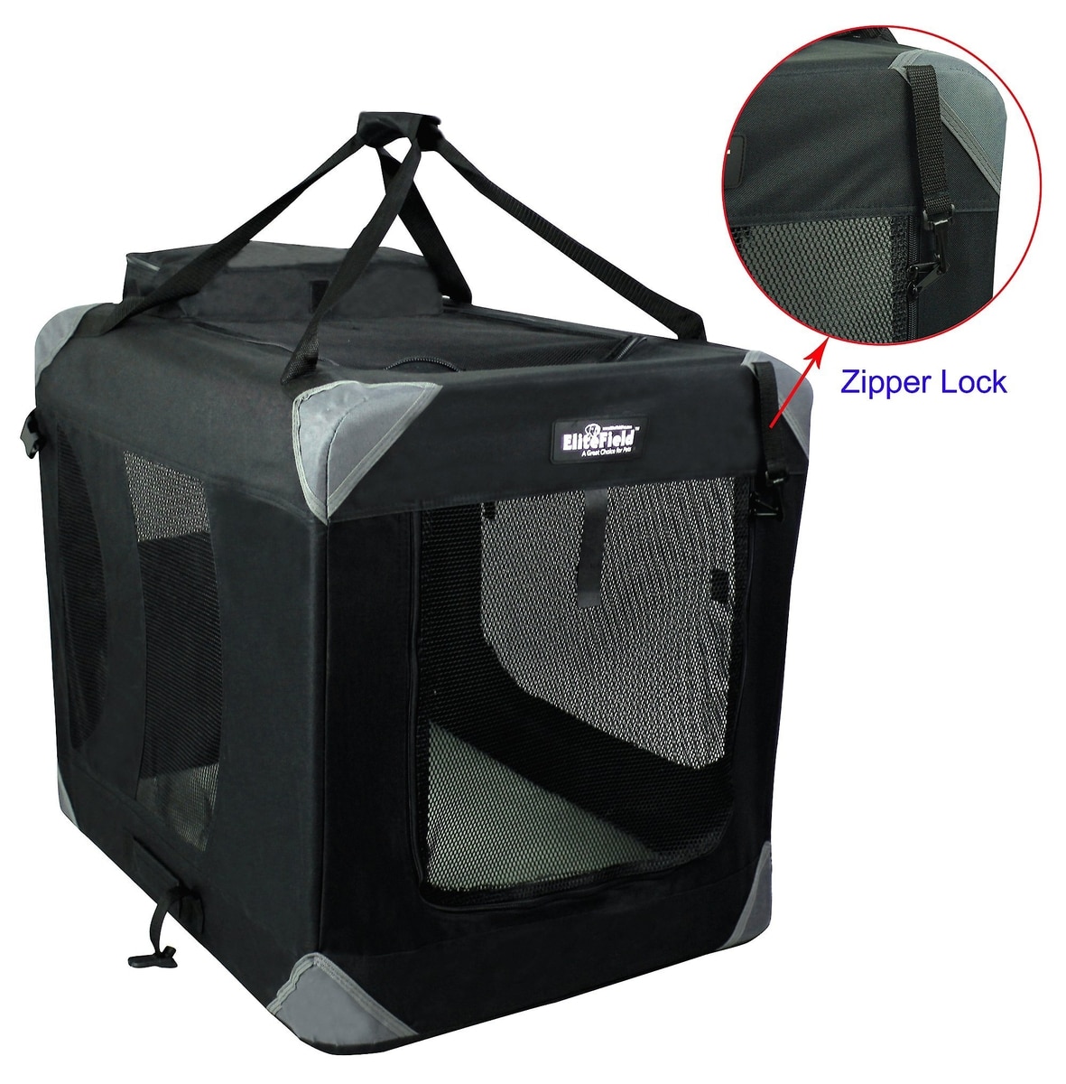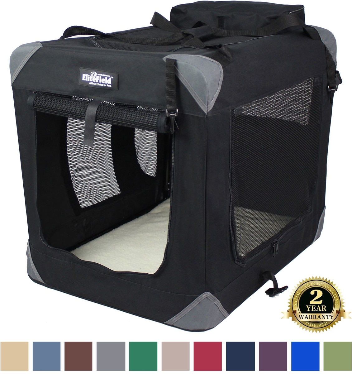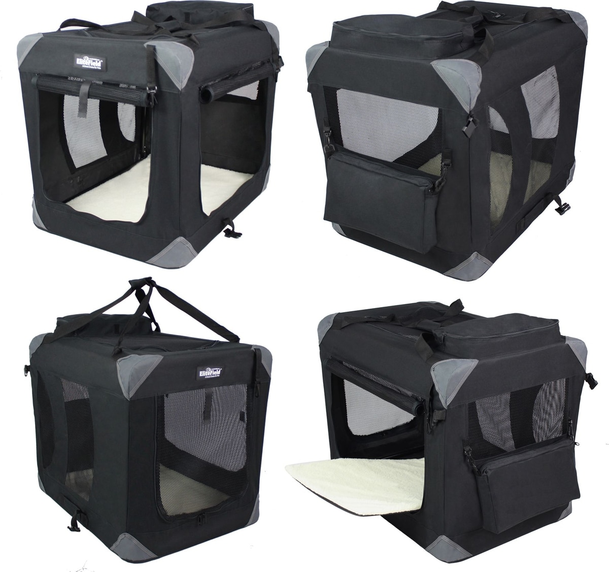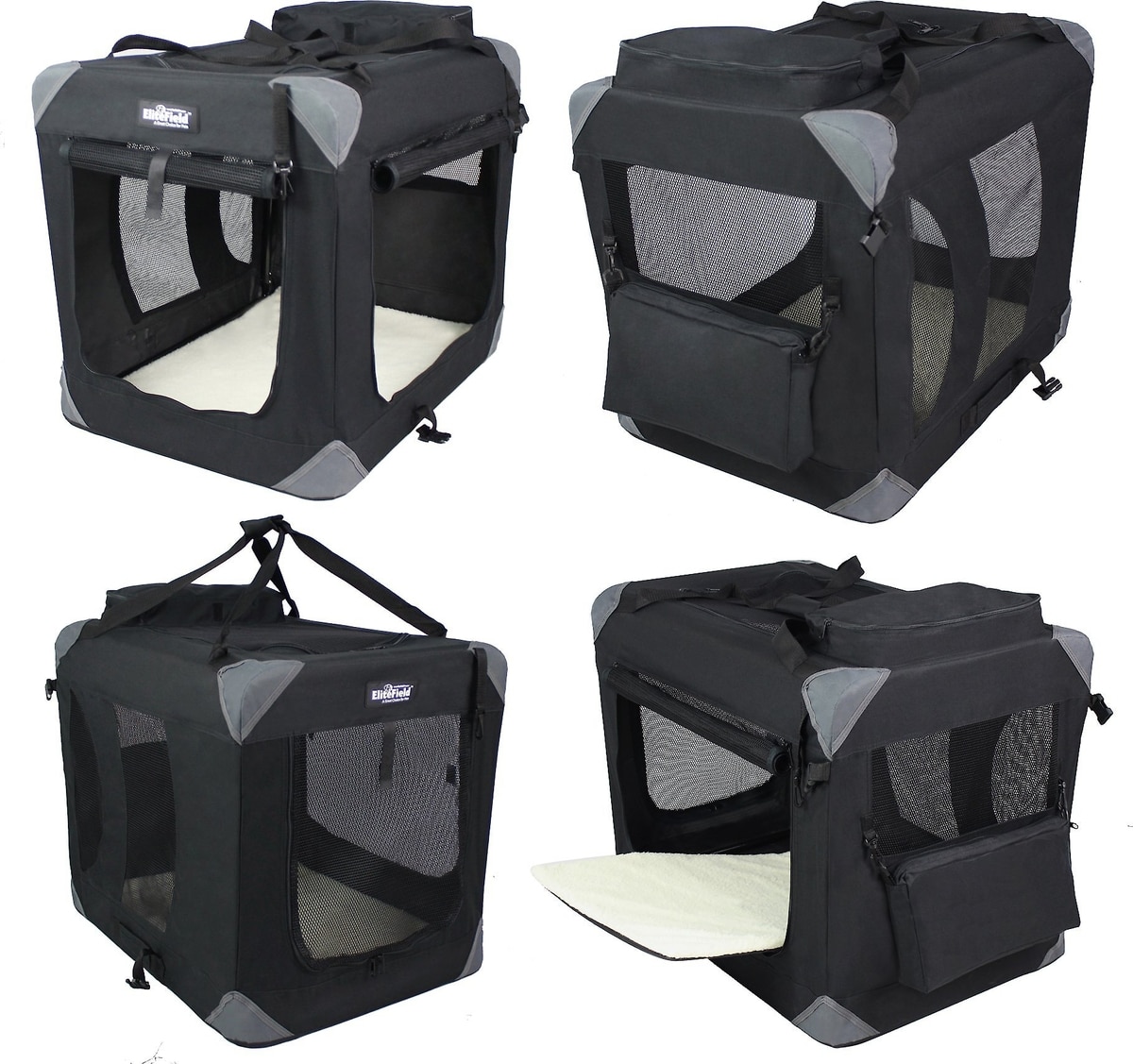 EliteField 3-Door Collapsible Soft-Sided Dog Crate, Black, 42 inch