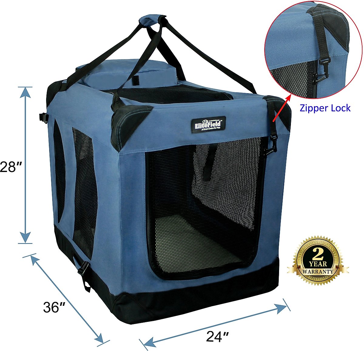 EliteField 3-Door Collapsible Soft-Sided Dog Crate, Blue Gray, 36 inch