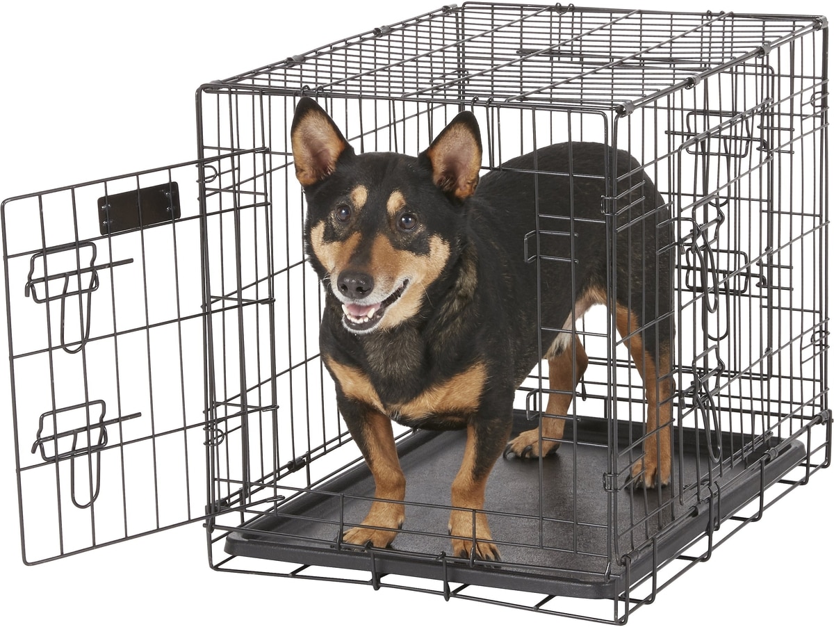 Since I wanted a three-door crate for a toy breed puppy, this was pretty much the smallest crate I could find that had three doors. However, the crate door closest to my van's driver side sliding door has two latches and the bottom latch is very difficult to open and shut. By contrast, the top latch is very loose and my less-than-10 lb pup managed to get the door open when only the top latch was "locked". So I have to close both locks. Of the three doors on that crate, the door that is used regularly for the pup appears to be bent out of shape. Considering what the crate cost, I should have sent it back. Unfortunately, by the time these issues became evident, I'd already donated my previous (large) dog's crate to a rescue group.