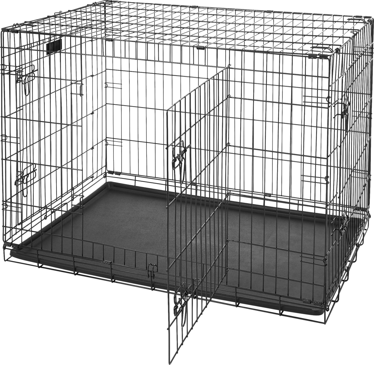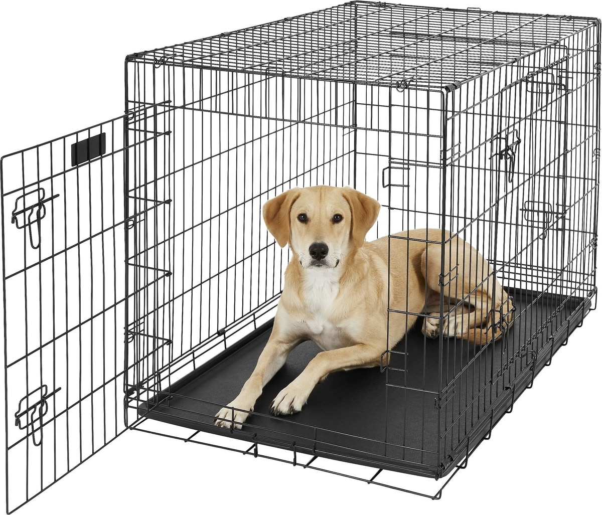 The 3 doors were located in the sides which is helpful with a big dog.. Sturdy wire crate