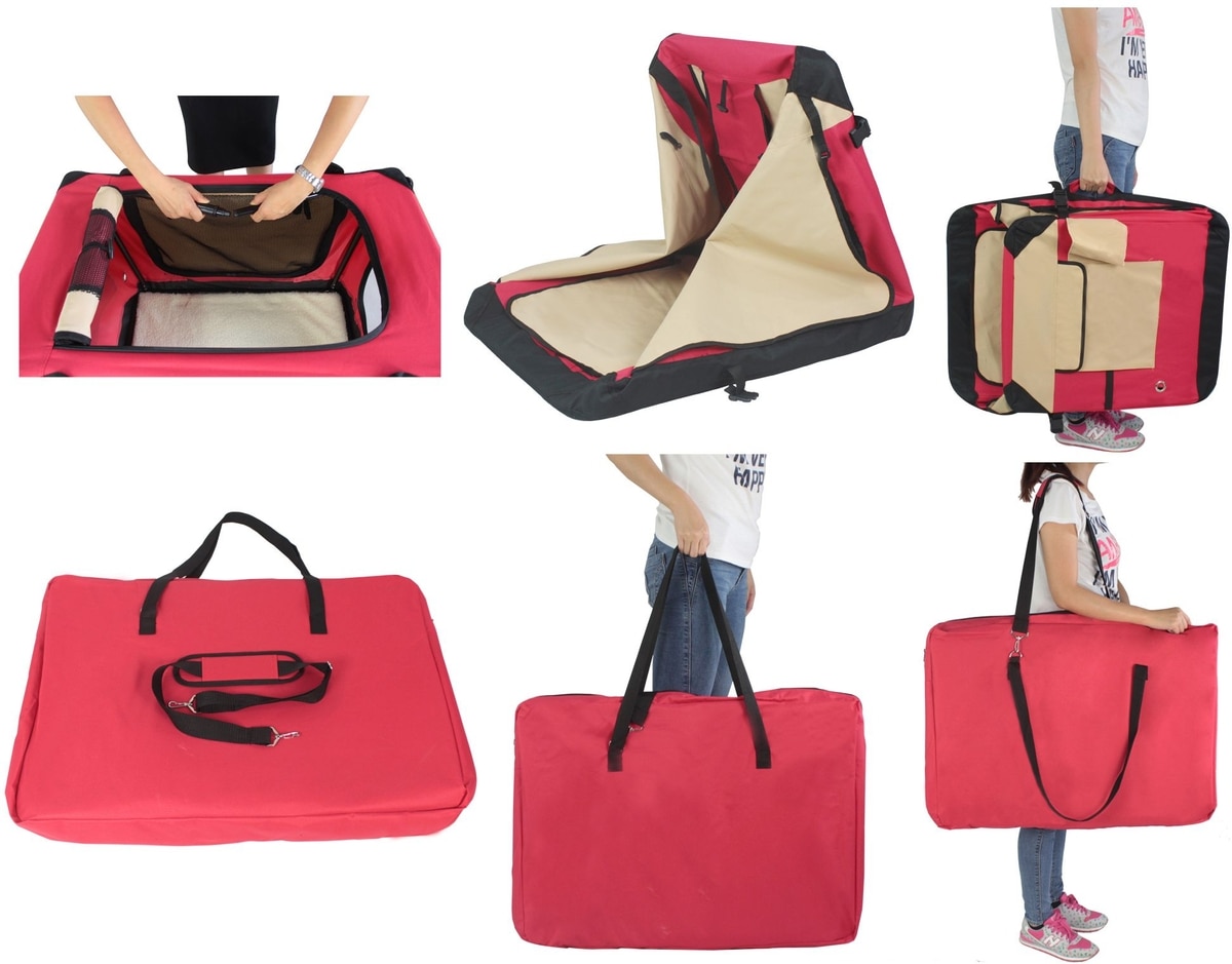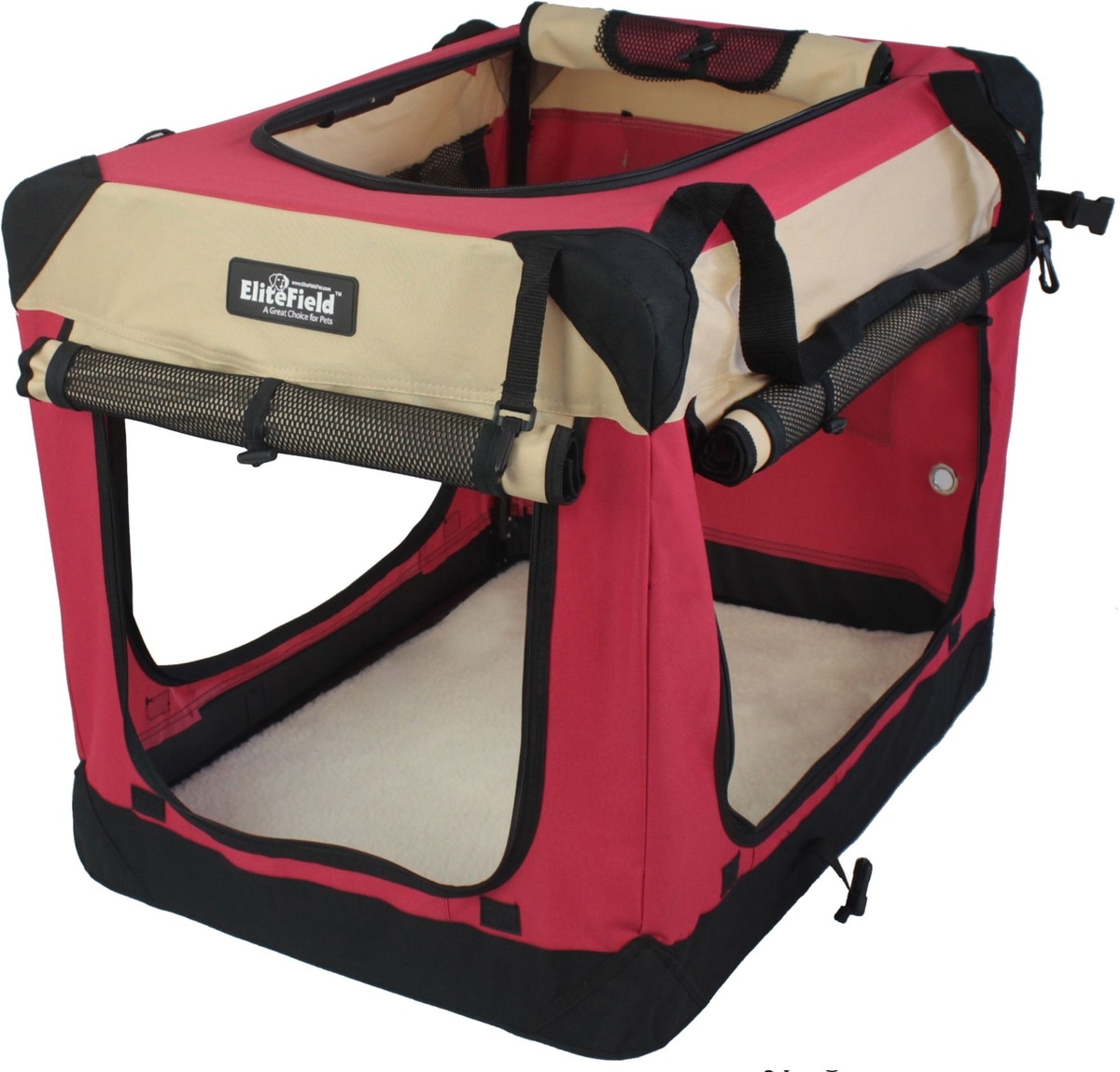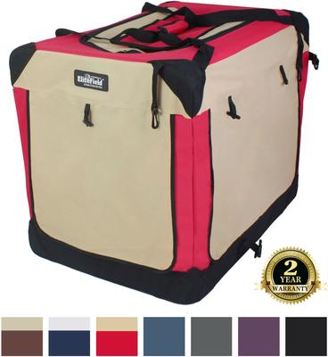 EliteField 4-Door Collapsible Soft-Sided Dog Crate with Curtains, Red/Beige, 20 inch