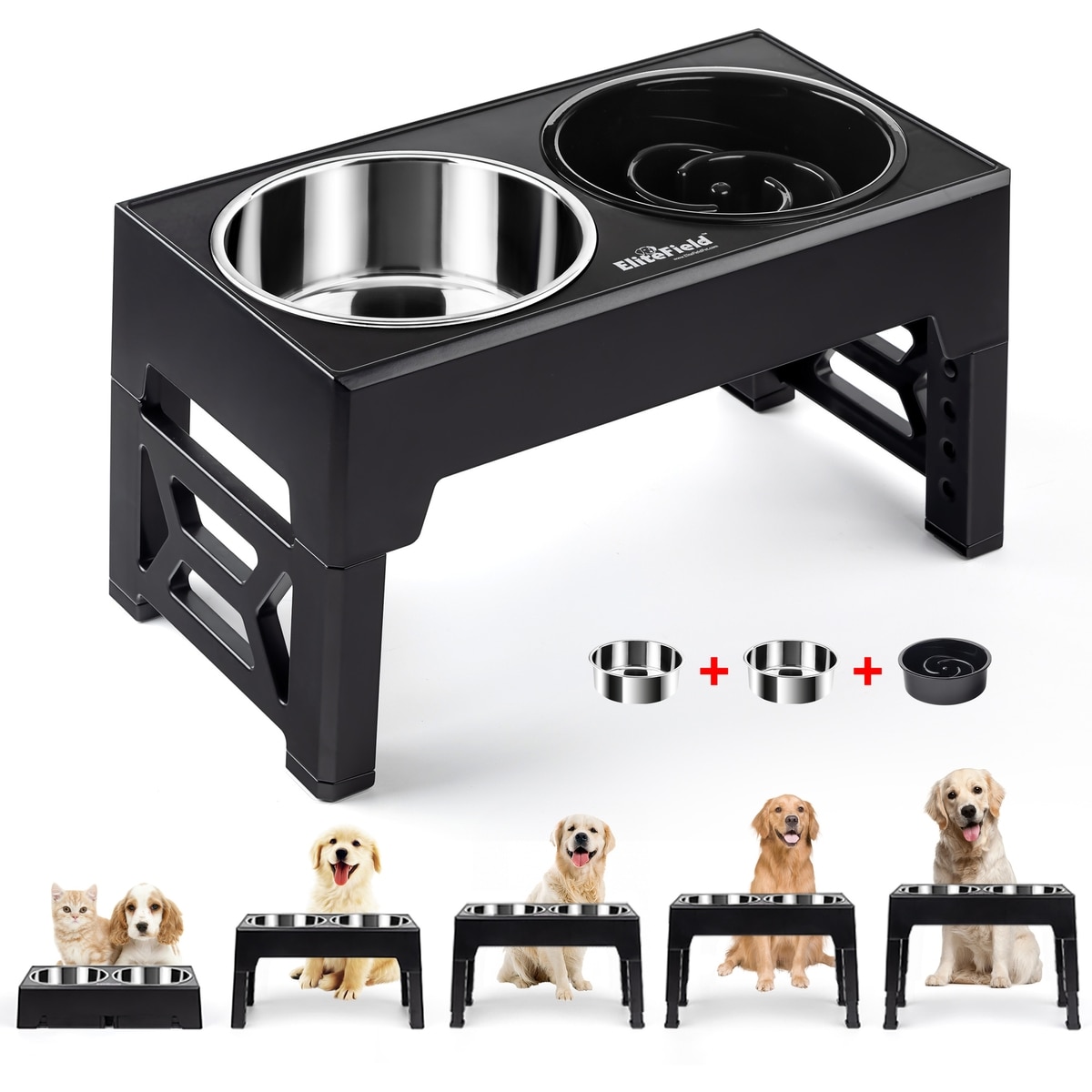 EliteField Adjustable Height Slow Feeder Dog Bowl, Black