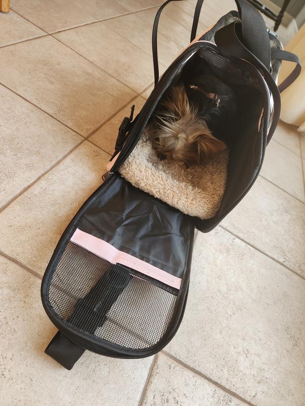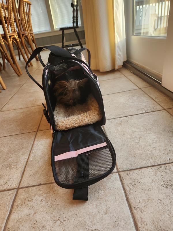 This soft sided carrier features flexible sides made with a durable, lightweight material. Other pet parents have reported this carrier to be sturdy when in use.
