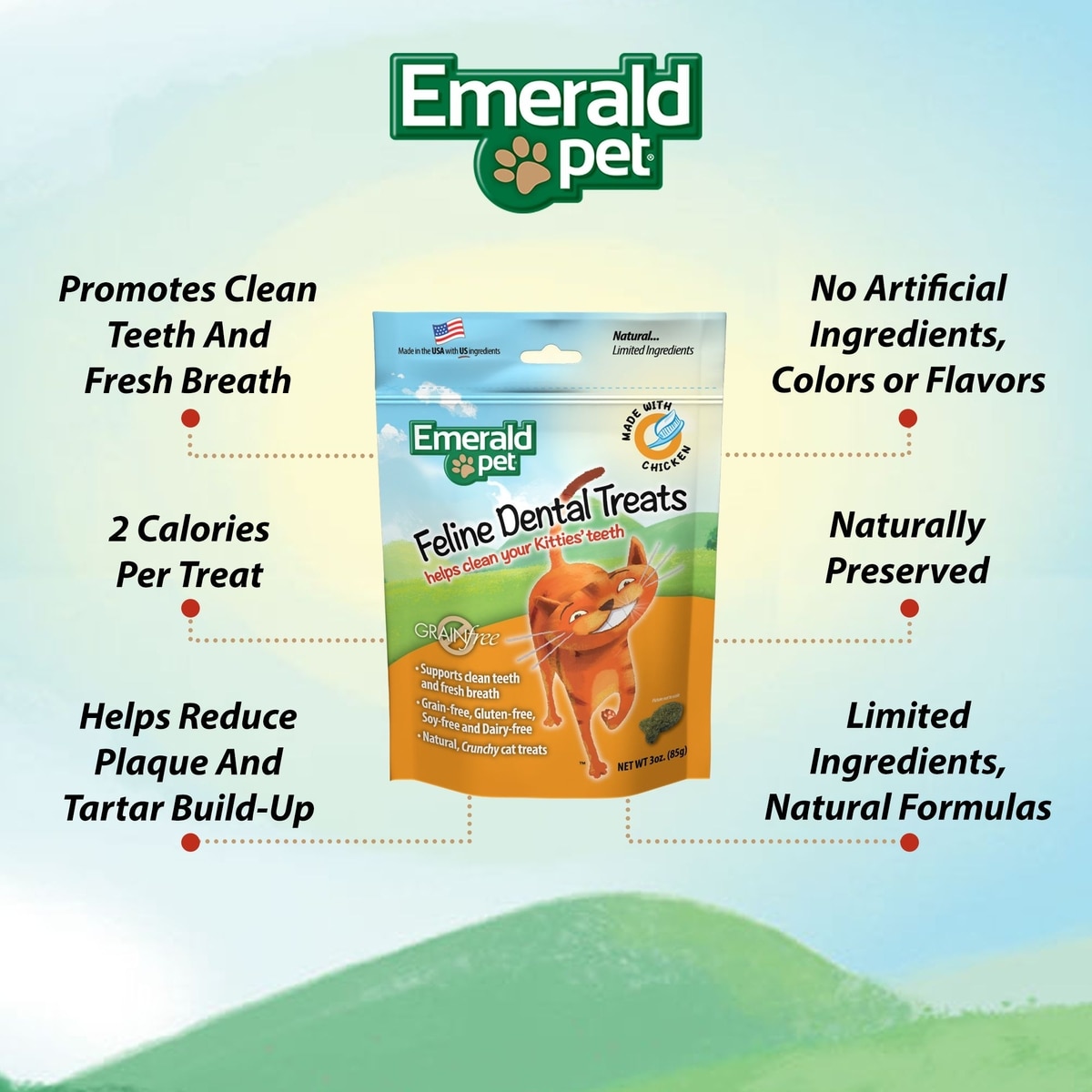 Emerald Pet Feline Dental Treats with Chicken Cat Treats, 12-oz bundle