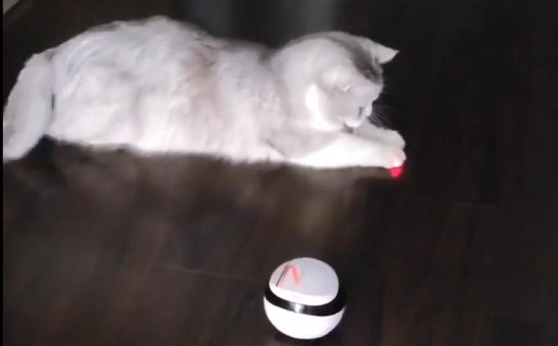This thing got a leaser piont, my cat is crazy happy with it, the robot can record the video and pictures, so COOL! And I can talk to my cat through it!
