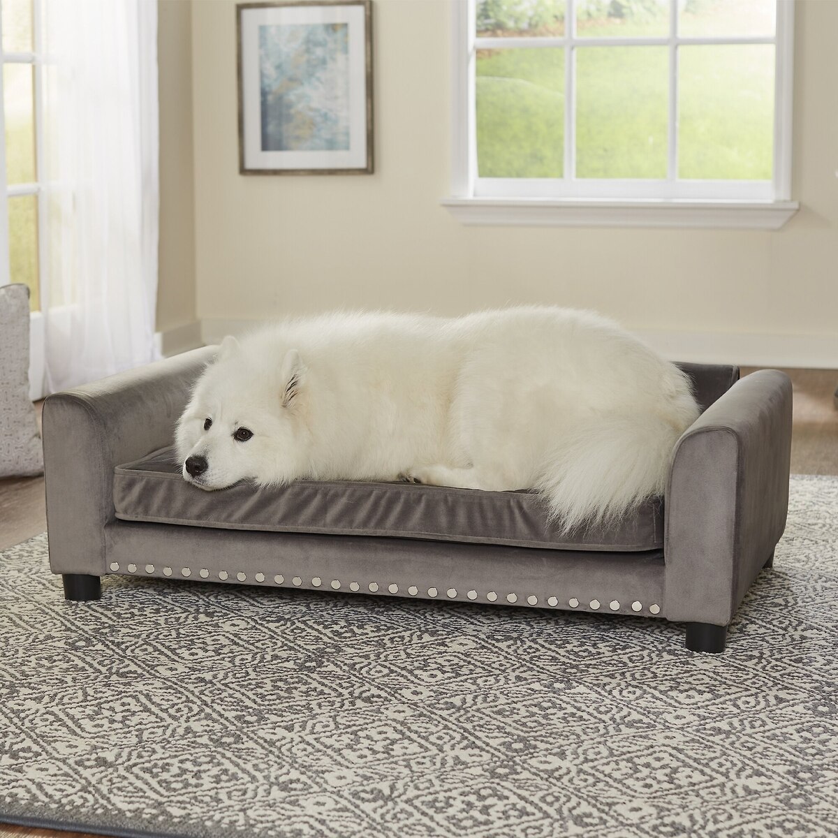 The feet for the sofa can be easily screwed into the bottom of the sofa.