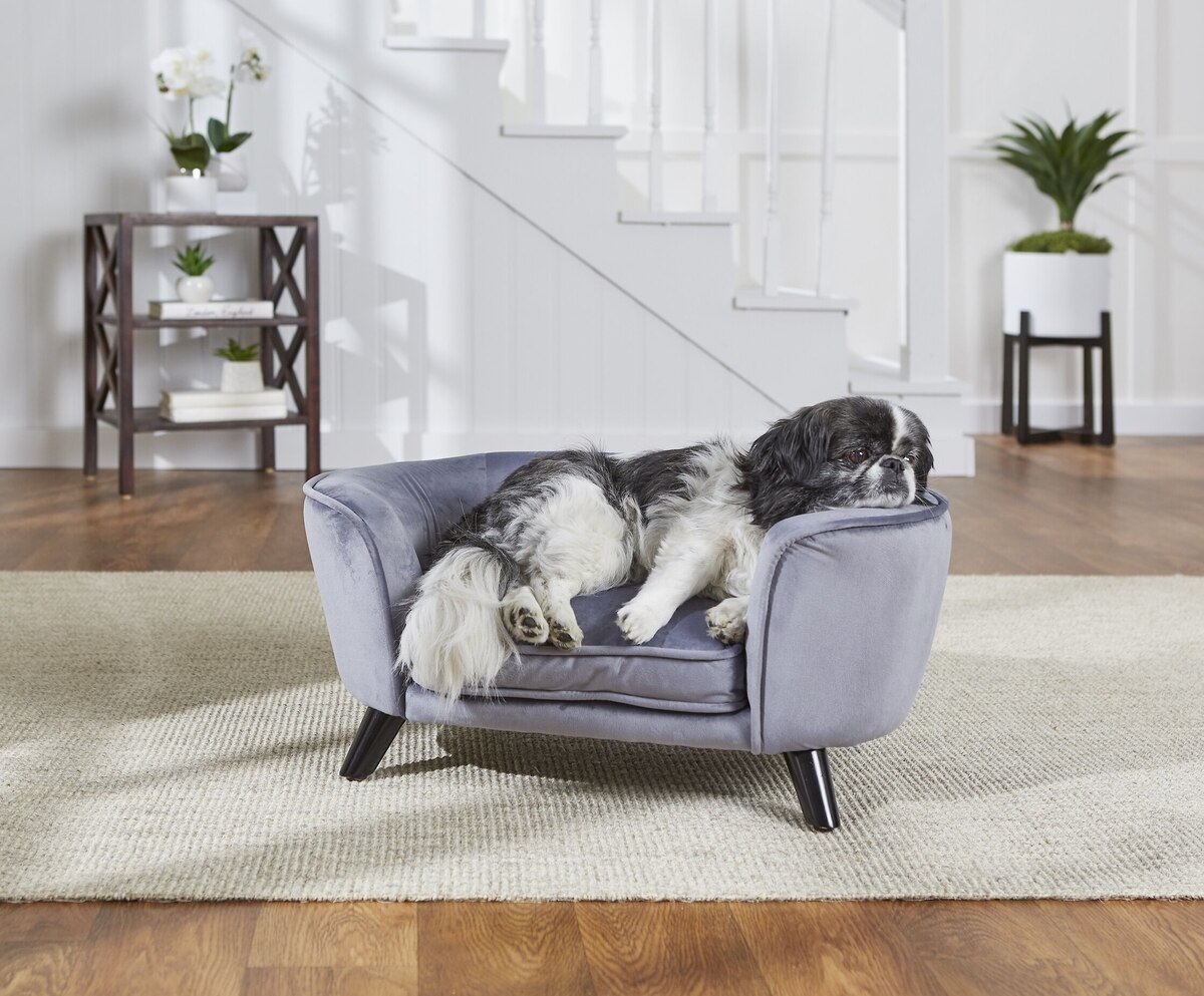 Enchanted Home Pet Romy Sofa Cat & Dog Bed with Removable Cover, Small, Pewter