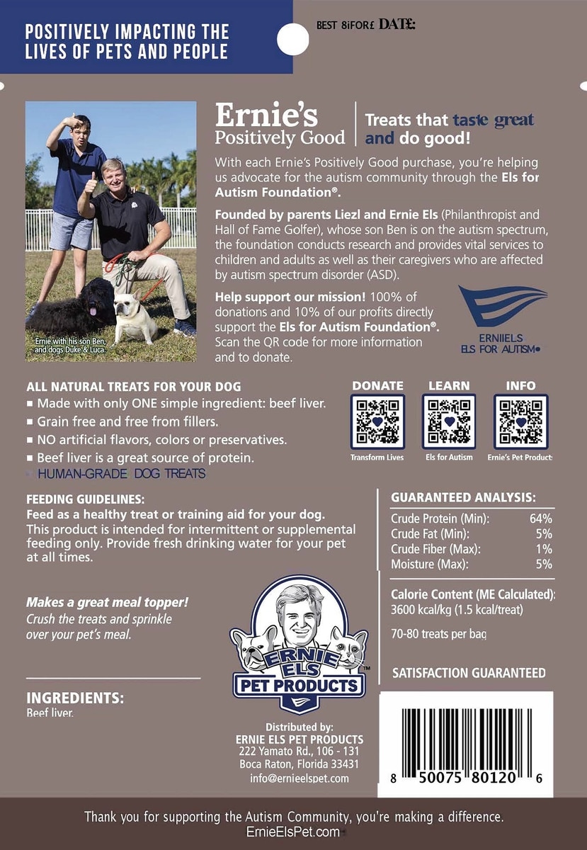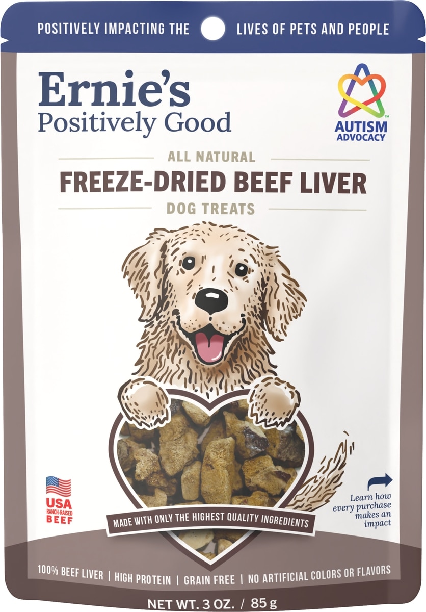 Ernie Els Pet Products Ernie's Beef Liver Grain-Free Freeze-Dried Dog Treats, 3-oz pouch