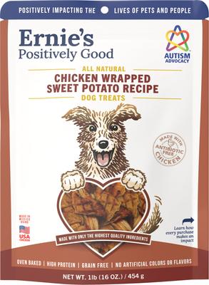 Ernie Els Pet Products Ernie's Chicken Wrapped Sweet Potato Recipe Grain-Free Jerky Dog Treats, 16-oz pouch