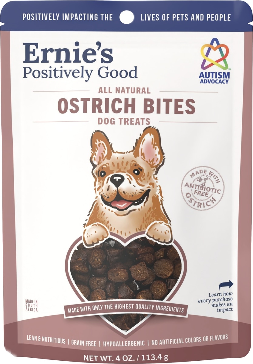 Ernie Els Pet Products Ernie's Ostrich Bites Grain-Free Soft & Chewy Treats, 4-oz pouch