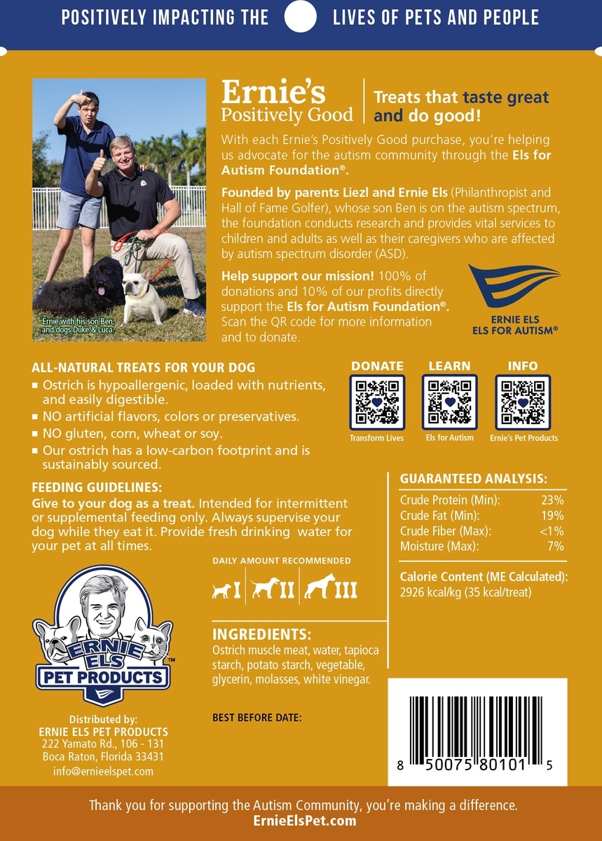 Ernie Els Pet Products Ernie's Ostrich Grain-Free Jerky Dog Treats, 4-oz pouch