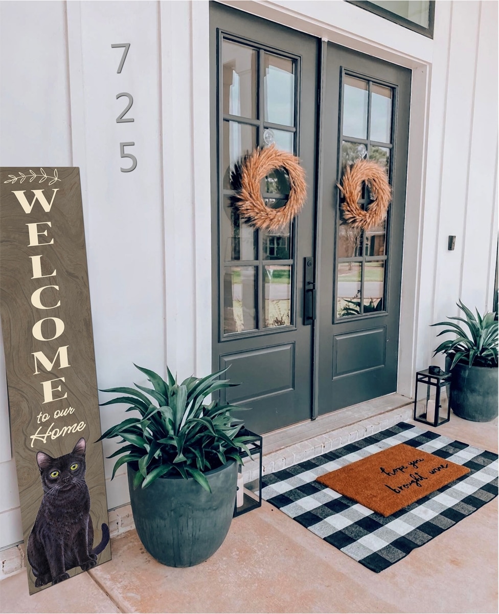 E&S PETS Black Cat Wooden Welcome Sign