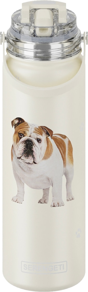 E&S PETS Bulldog Stainless Steel Water Bottle, 24-oz, Cream