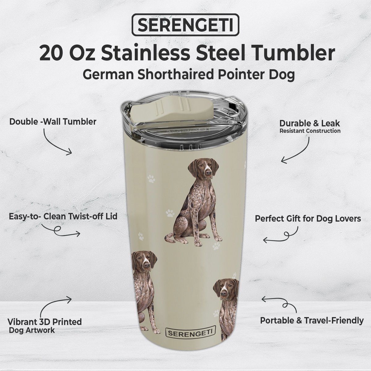 E&S PETS German Shorthaired Pointer Lovers Insulated Stainless Steel Travel Mug, 20-oz, Green