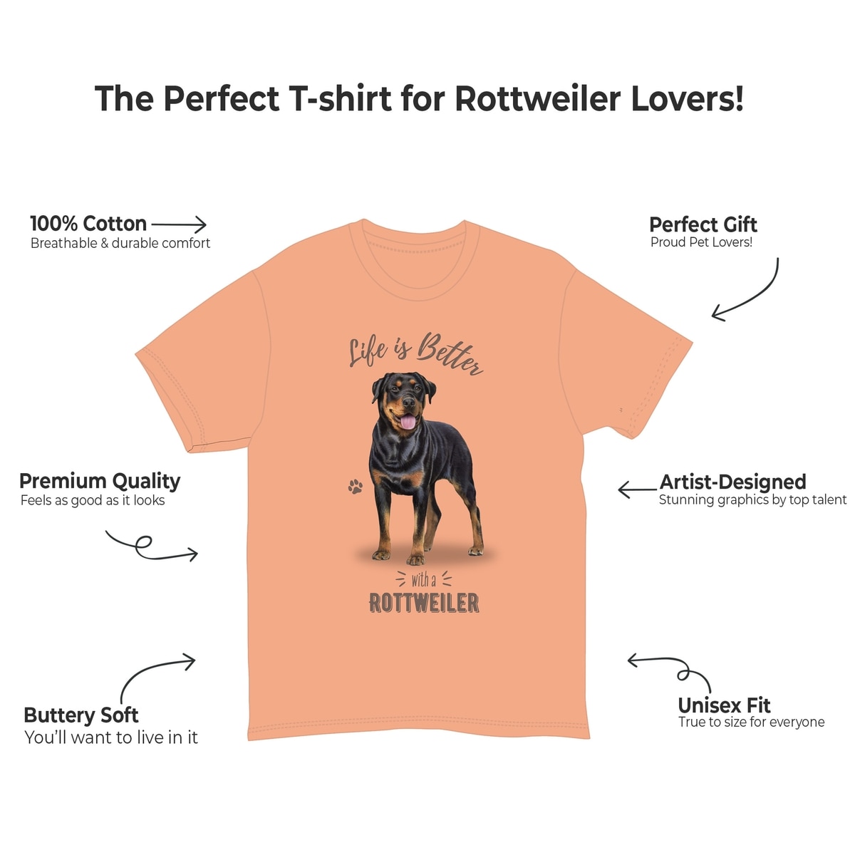 E&S PETS Rottweiler T-Shirt, Coral, Large