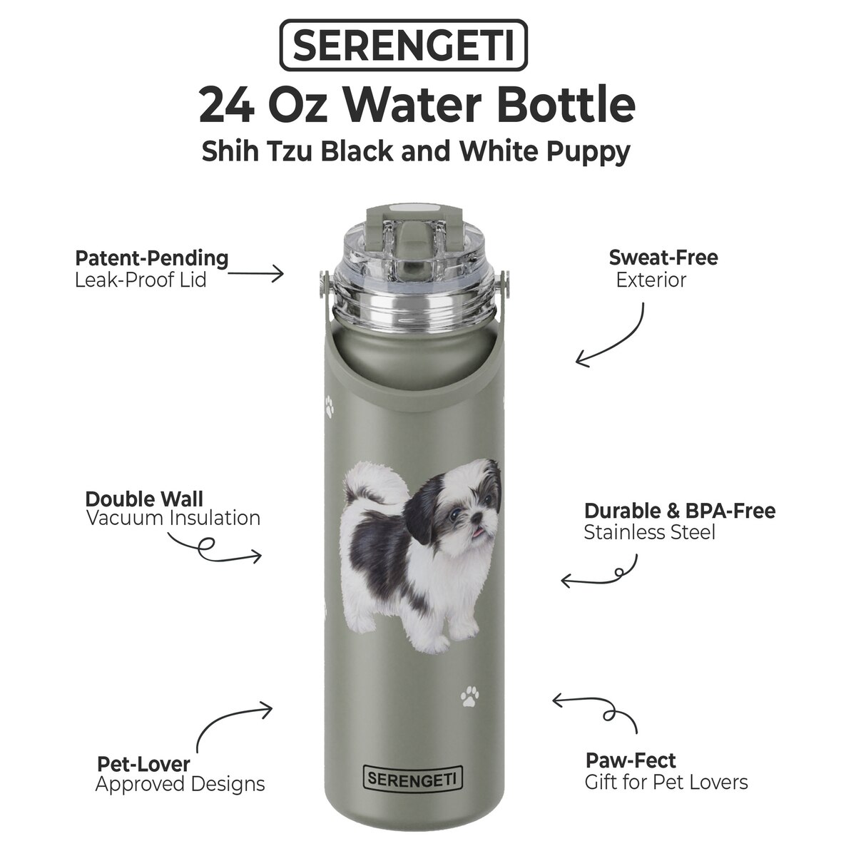 E&S PETS Shih Tzu Stainless Steel Water Bottle, 24-oz, Purple