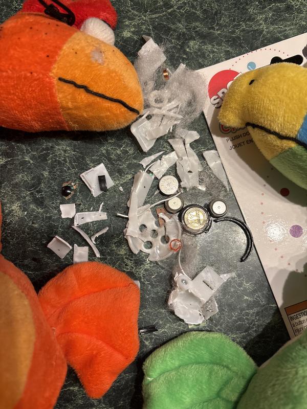 The item I ordered was supposed to chirp when shook. It even says so in the description. This is a cheap toy that has a small squeaky in the belly. Is the other one not available?