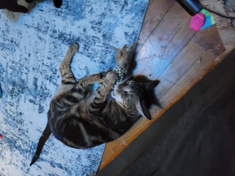 I have four cats who all love this toy. They take turns throughout the day rolling on the floor with it, rubbing their faces on it, and chewing on it. With that