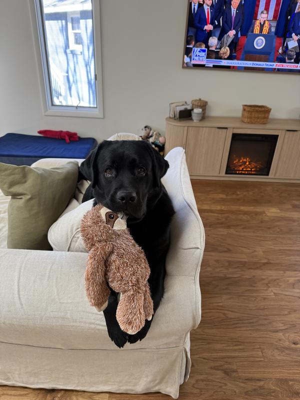 Ethical Pet Fun Sloth Squeaky Plush Dog Toy is made in China.