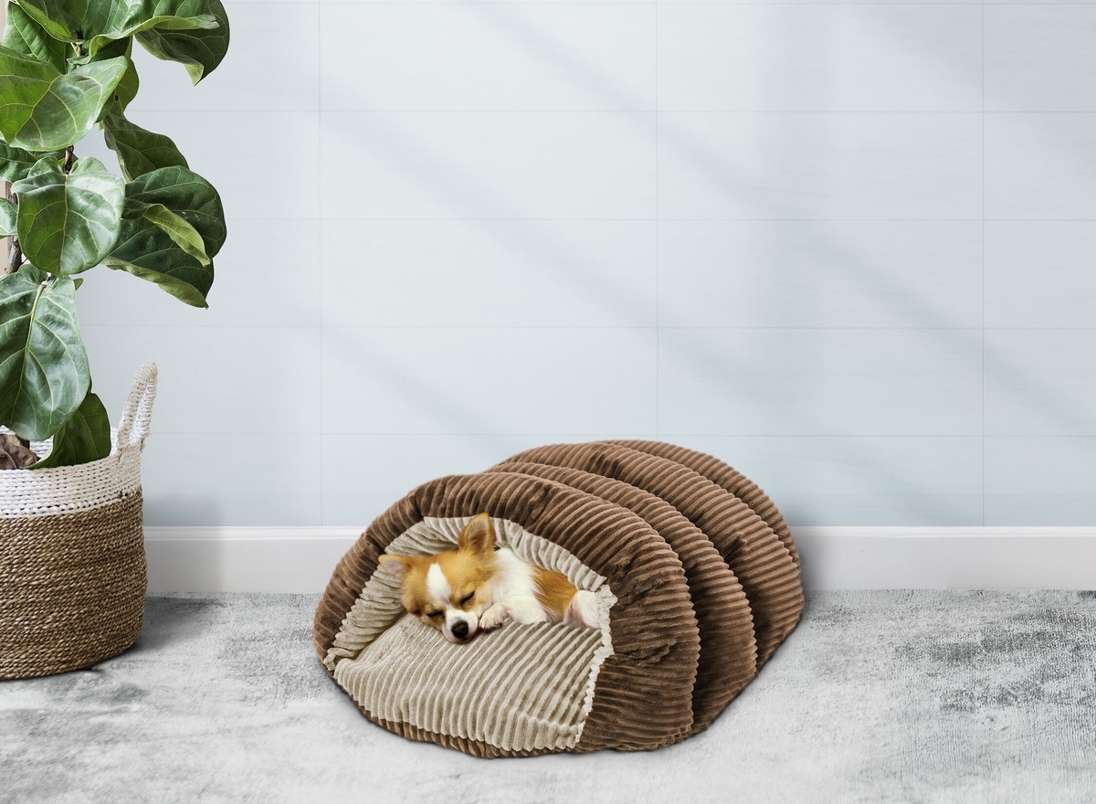 Ethical Pet Sleep Zone Cuddle Cave Covered Cat & Dog Bed, Chocolate, 22-in