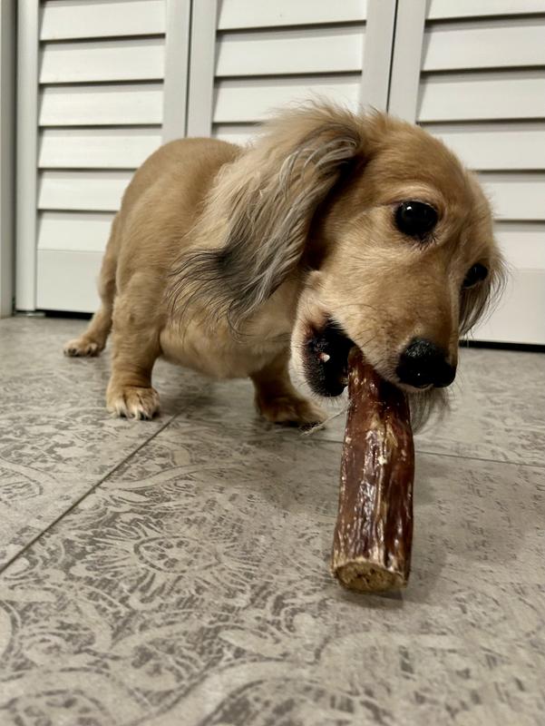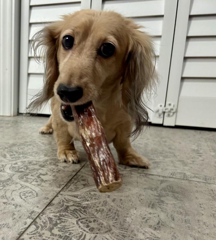 All ingredients used to make Etta Says! Esophanormous bully stick chews are sourced from local farms and made in the USA. Etta Says! only uses all-natural ingredients in their products, because the quality of what you feed your pet matters.