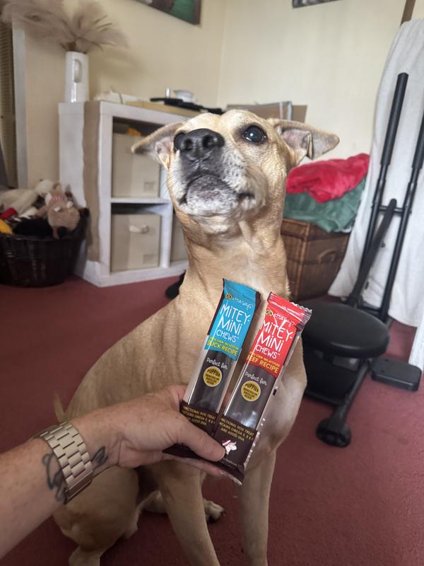 Gentle on Teeth, Packed with Flavor Each Mitey Mini is soft and chewy, making it perfect for tiny mouths and sensitive teeth. Whether your dog is aging gracefully or just starting out, these treats are designed for easy chewing and delicious reward.