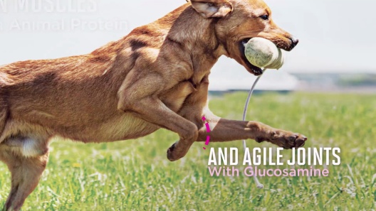 Animal protein, glucosamine, and chondroitin sulfate help promote lean muscles and agile joints.