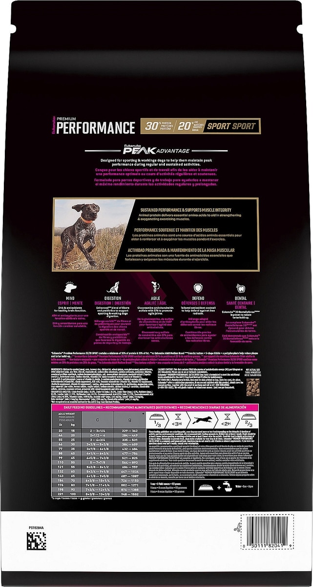 The Eukanuba Premium Performance lineup is performance nutrition formulated for multiple levels of activity and optimized for nutrient delivery.