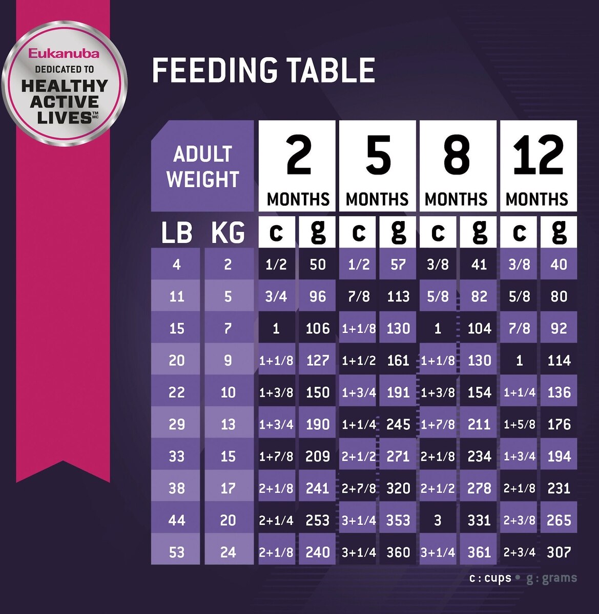Fuel your active breed with a formula specifically tailored to your dog’s life stage and breed size. Eukanuba dog foods are formulated to match specific body, mind and energy needs, so your dog can get the right nutrition levels for all his pursuits.
