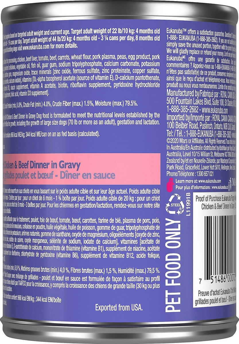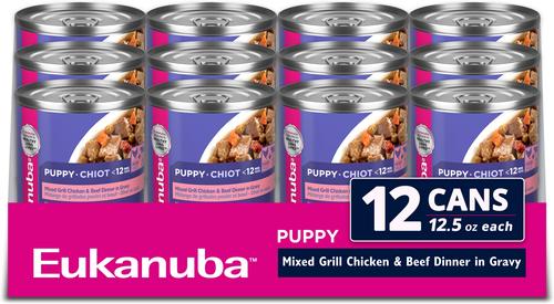 Eukanuba Puppy Mixed Grill Chicken & Beef Dinner in Gravy Canned Dog Food, 12.5-oz, case of 12