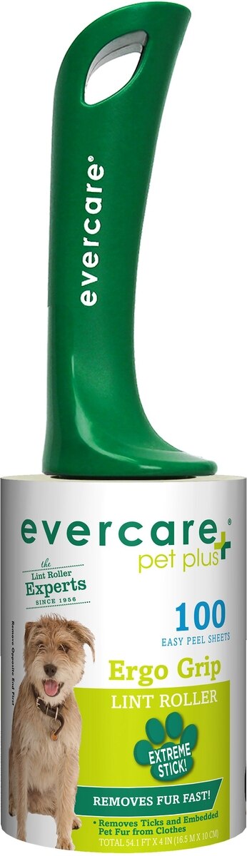 Evercare Pet Plus Extreme Stick Ergo Grip Pet Lint Roller, 100 sheets