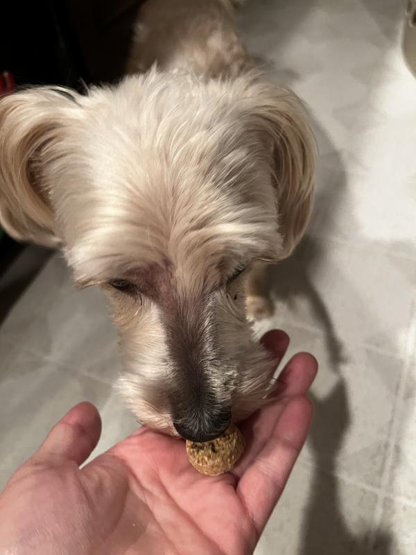 Maple started whining as soon as i got the bag out. Before it was even opened! She loved this treat, however she's a bit messy and these are a bit crumbly. All in