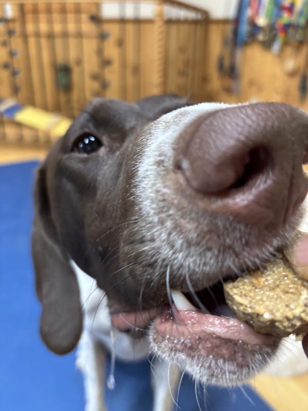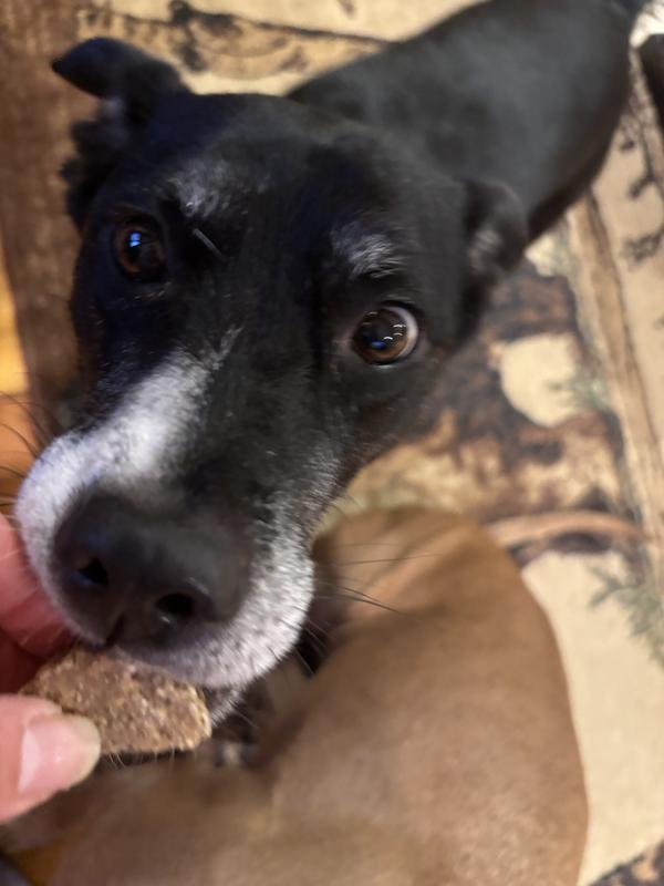 Maple started whining as soon as i got the bag out. Before it was even opened! She loved this treat, however she's a bit messy and these are a bit crumbly. All in all a great treat.