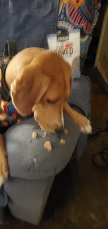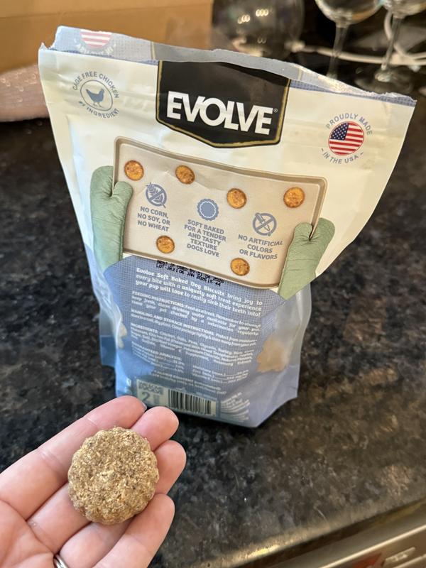 A Very Tasty Biscuit!!! All five of my dogs LOVED Evolve's Soft Baked White Chicken & Apples and couldn't get enough, evidenced by the puddles of drool when the