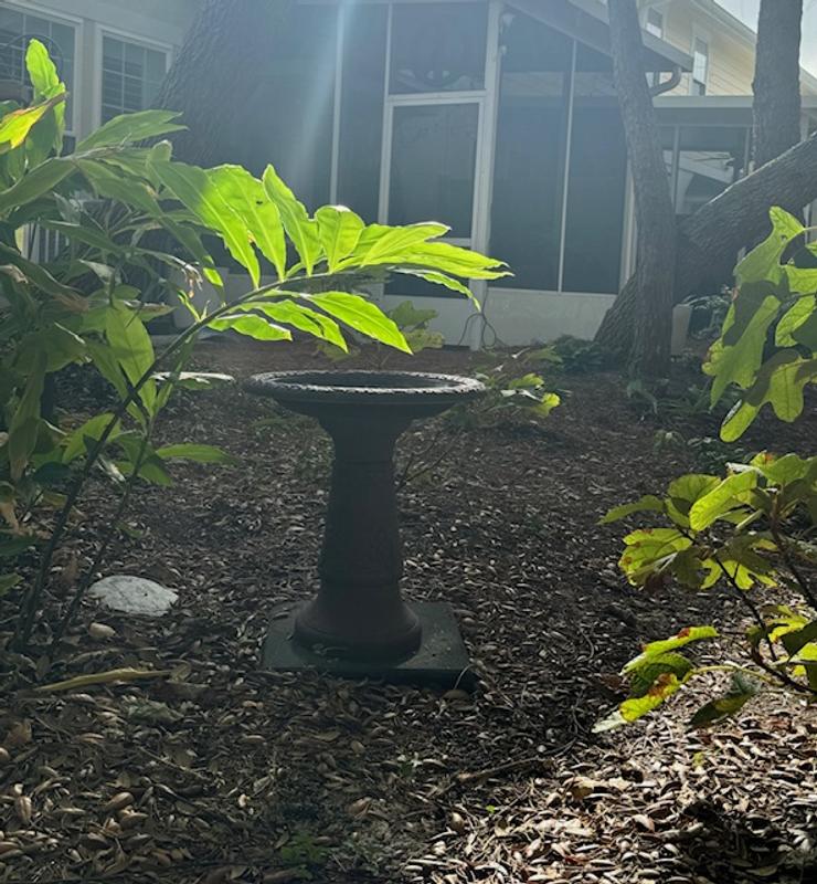 This bird bath really looks like a stone bath when it's actually plastic. We love it.