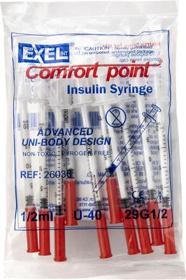 Exel Comfort Point Insulin Syringes U-40 0.5-in x 29G, 0.5-cc, 10 syringes