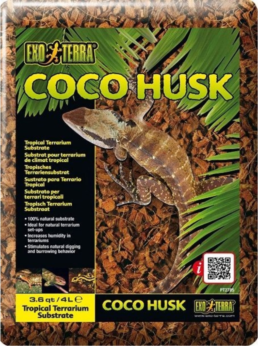 Exo Terra Coco Husk Tropical Terrarium Reptile Substrate is also safe for frogs, salamanders and burrowing or digging animals.