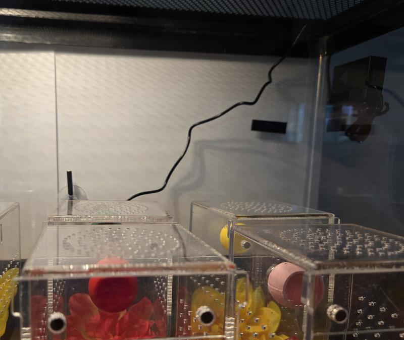 I've been using this product for about 3 weeks in my snakes terrarium. We had one that stuck to the glass but my snake manages to get it off often. This is a little