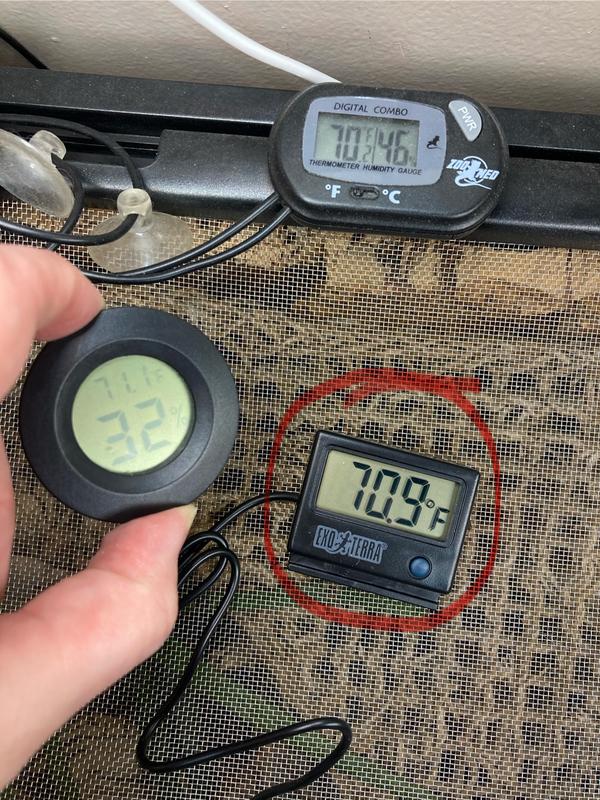 Perfect simple thermometer for my tortoise crew! I have one adult sulcata and four desert tortoises (two California desert tortoises and two smaller ones), and I