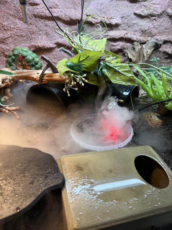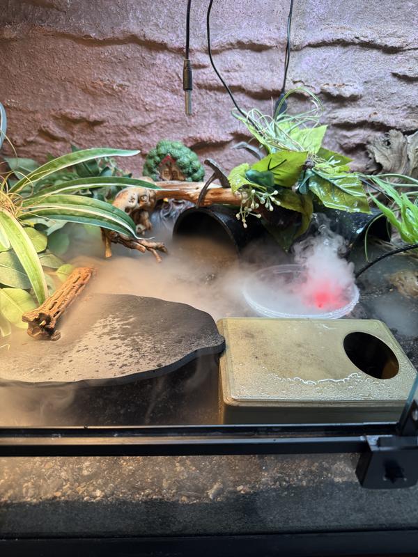 I love using the fogger for the frog tank it’s so much easier then having to fog them myself and the frogs seam happier too as they are getting fogged more often and more at a regular timing