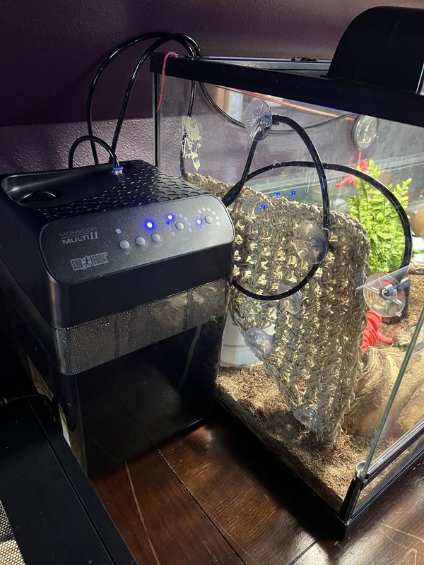 The Exo Terra Monsoon Multi II is a great addition to keep perfect humidity in all my enclosures.With the multiple nozzles and long hosing it allows me to easily provide moisture to my gecko and hermit crab simultaneously. The fine mist keeps my gecko’s skin healthy and helps with shedding, while my hermit crabs stay active and comfortable with consistent humidity. The programmable timer is super easy to use, letting me set short or long misting cycles to fit each setup. I love the large water reservoir. I can go several days without having to fill it and I no longer need to use a manual spray bottle throughout the day to mist the tanks with. The adjustable nozzles make it easy to direct the mist exactly where needed. It has been reliable, quiet, and a total game changer for reptile and terrarium care.