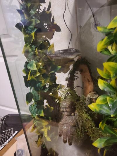 This can be placed anywhere in the terrarium. We recommend placing it somewhere your pet has access to and prefers to hang out.