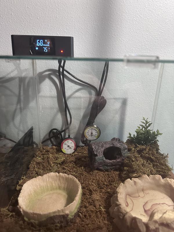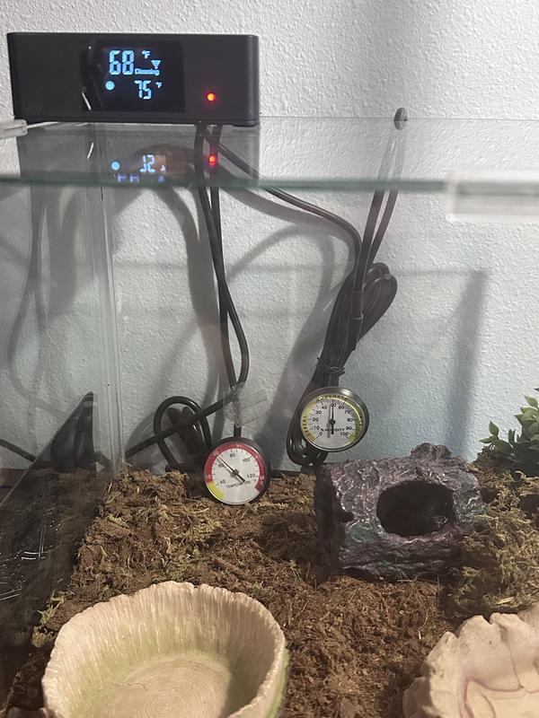 The Exo Terra 600W thermostat has two receptacles. This allows you to plug in and control two separate heating devices, for instance, a heat lamp for daytime and a heat mat for nighttime.
